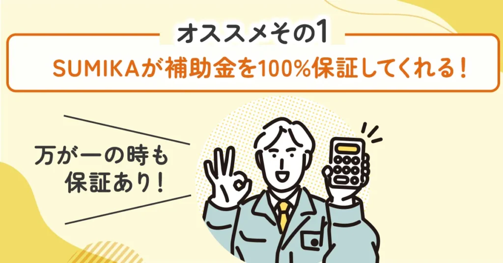 SUMIKAのスタッフが提示した金額が万が一もらえない場合、補助金分をSUMIKAが100%保証※してくれます!