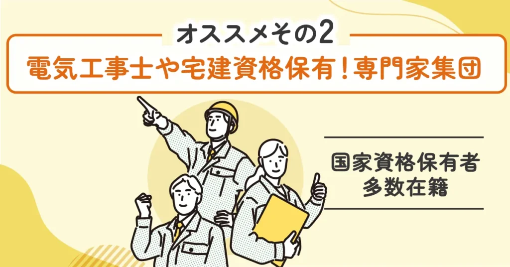 4.8点 3,000件突破! | 宅建士や電気工事士、 1級建築士など 国家資格保有者が在籍 |