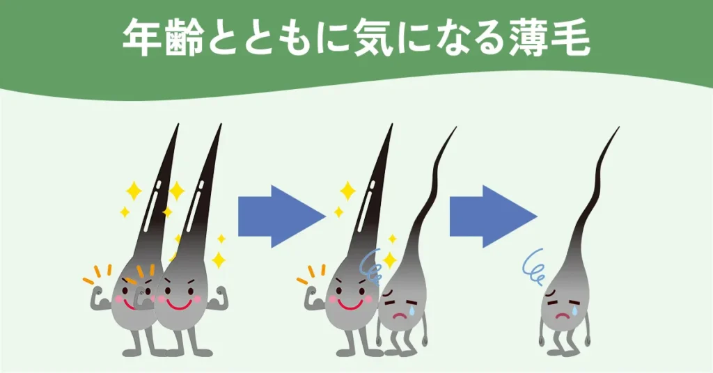 残念ですが、薄毛や抜け毛は年齢を重ねるごとにどんどん悪化します。失ってしまった毛根は、二度と復活しません。