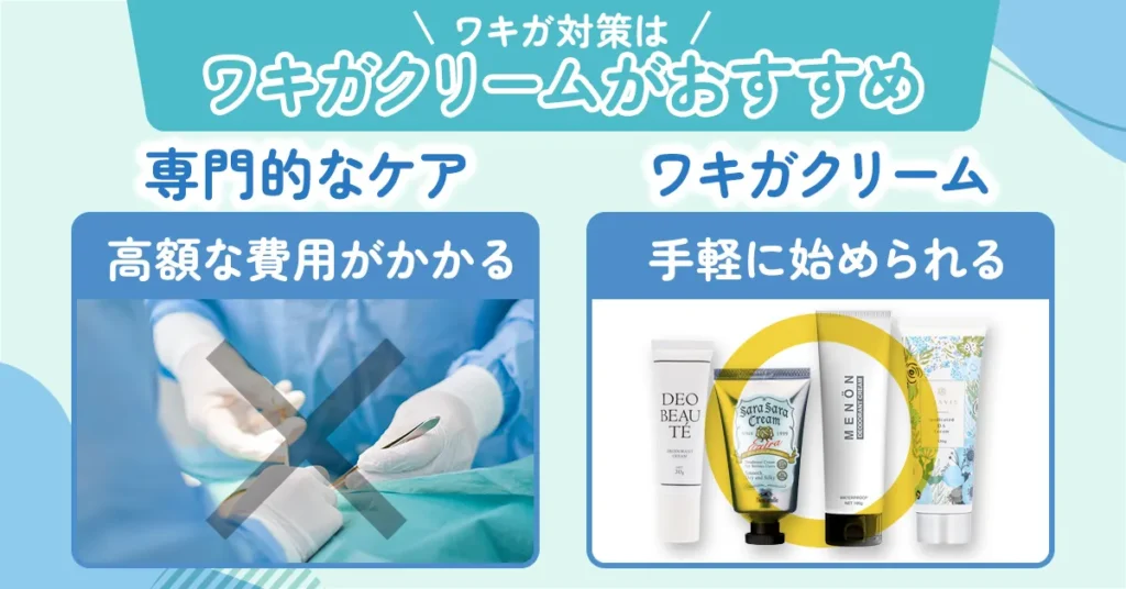 手術などの専門的なケアは、お金がかかるし通院が大変…。おすすめなのが殺菌成分・制汗成分が含まれている医薬部外品のワキガクリームです!