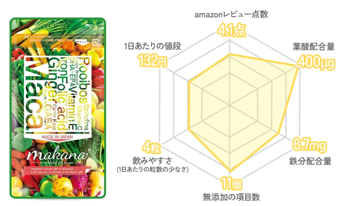 鉄分、マカ、ビタミン、和漢成分などを贅沢に!