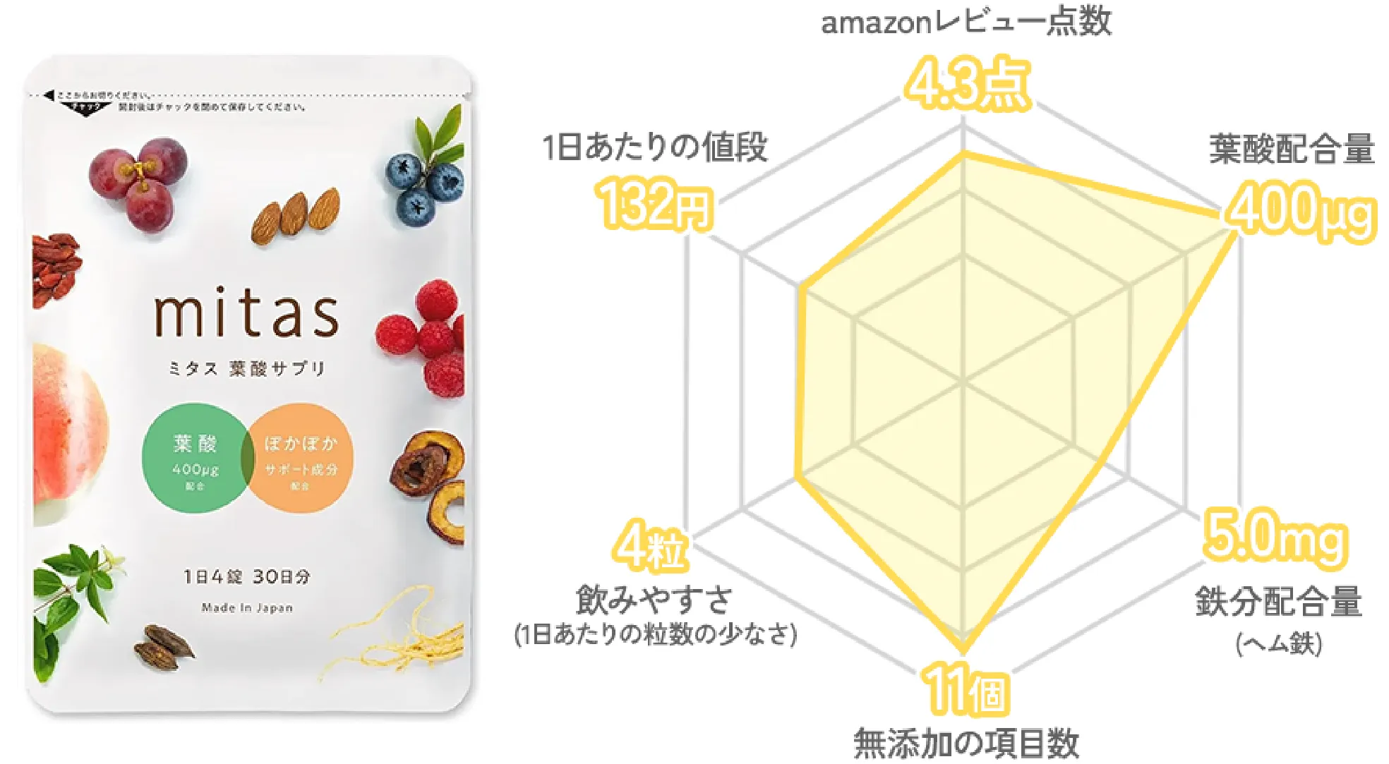 \約40%OFF/ 3,980円(税込) | 合成葉酸 400μg | 8.7mg |
