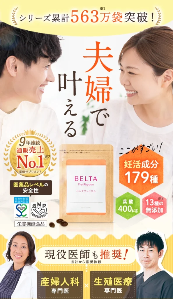 妊活特化のベルタは吸収率の高い酵母葉酸を100%配合!