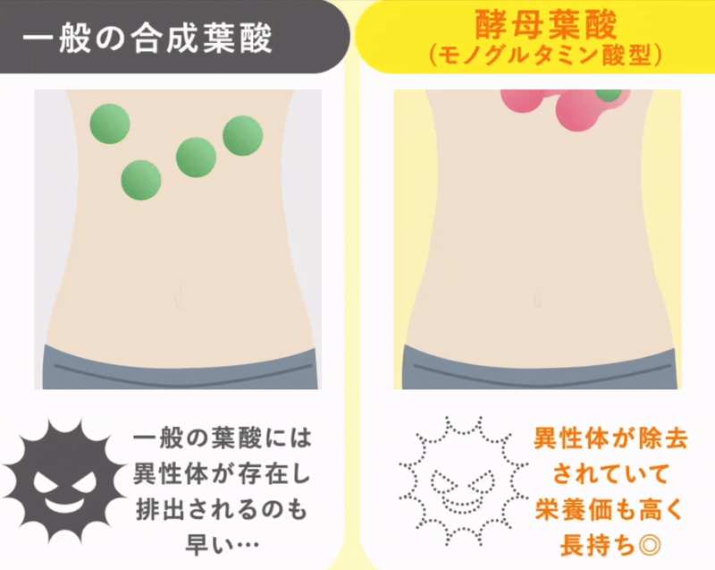 配合されている葉酸も体内への吸収率の良い「酵母葉酸」を使用しているケースが多いです!