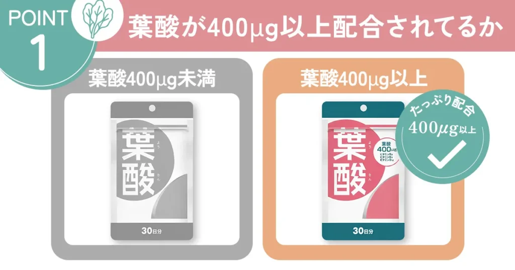 - 葉酸が400μg以上配合されてるか